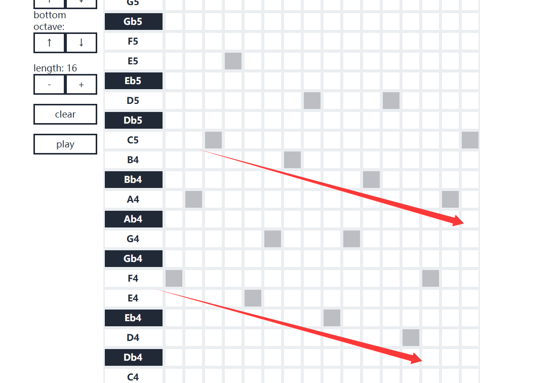 Now we swap the iii chord (E-min-7) for E7 by lowering A to A♭ (red dot):